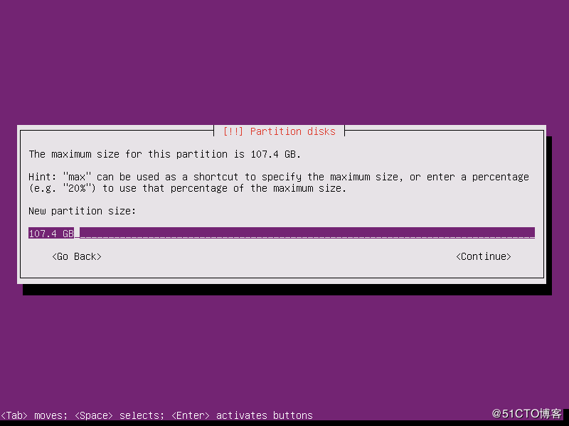 1.17 指定分區(qū)大小,這里將磁盤的全部大小劃分給該分區(qū)