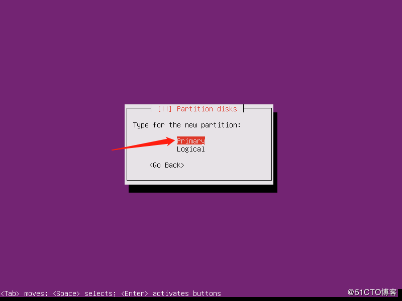 1.18 選擇分區(qū)類型,這里選主分區(qū)