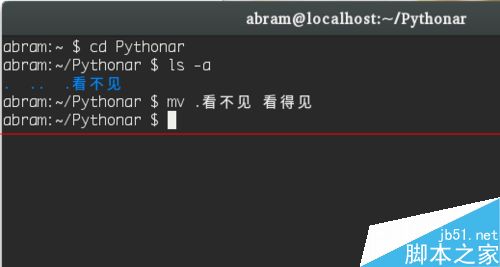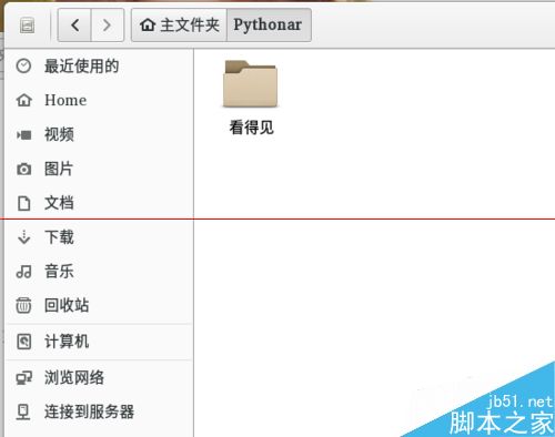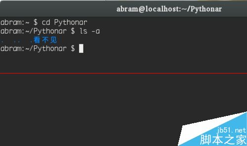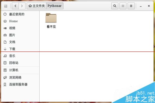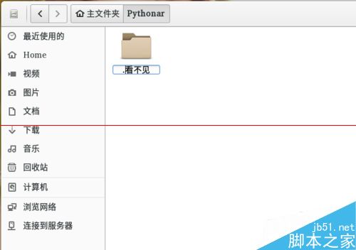 1、首先展示如何隱藏文件夾。(文件和文件夾的操作方法完全一致,后面就略掉了。)假如在你的Home目錄下有個(gè)Pythonar目錄,里面有個(gè)文件夾叫“看不見”。