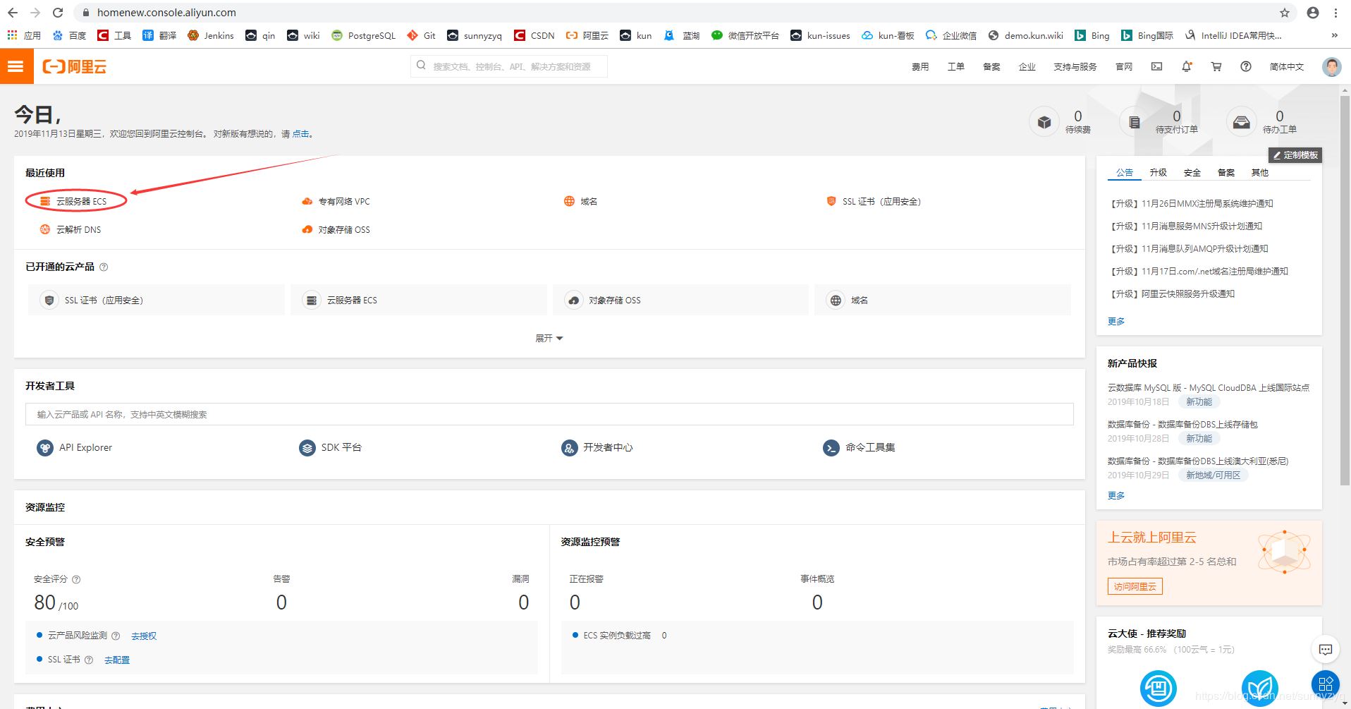 (1)登錄阿里云,找到【云服務器ECS】,點擊;