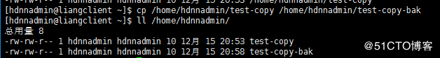 或者#cp /home/hdnnadmin/test-copy{,-bak}