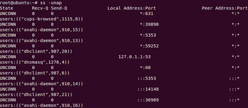 3. 跟上面的行為一樣,你只需用u代替t就會(huì)顯示所有開放的UDP端口。