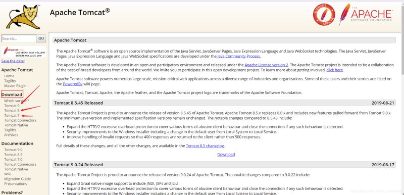 官網(wǎng)地址-點(diǎn)擊進(jìn)入 http://tomcat.apache.org/