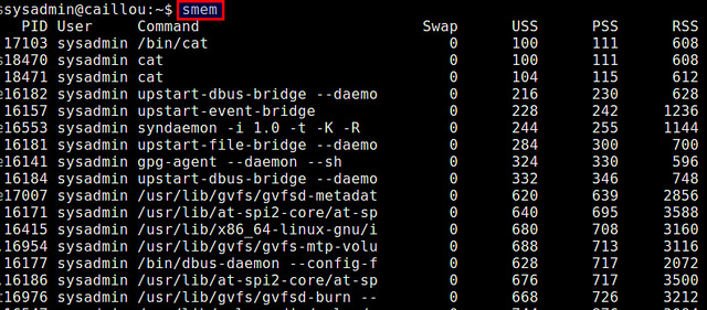 你可以在非特權模式下使用smem,它能夠顯示當前用戶運行的所有進程的內存使用情況,并按照PSS的大小進行排序。