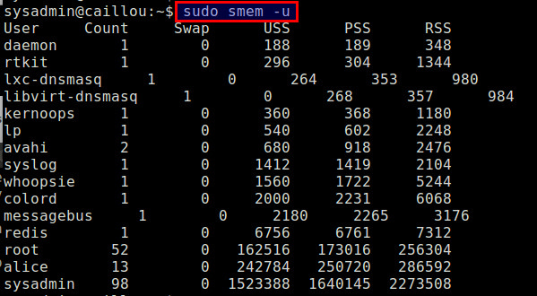 如有你想得到整個系統(tǒng)中所有用戶的內存使用情況,就需要使用root權限來運行smem。