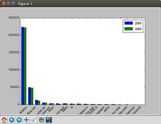 這個例子會生成一張餅圖,圖中顯示了系統(tǒng)中各進程的PSS內存使用量: