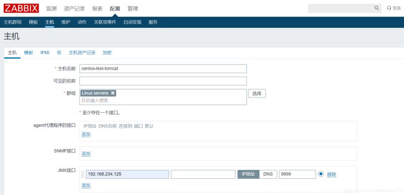 #與普通情況添加監(jiān)控主機(jī)不同,監(jiān)控B機(jī)器的tomcat需要配置JMX接口
