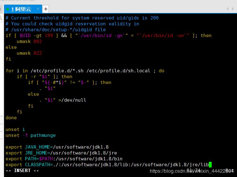 export JAVA_HOME=/usr/software/jdk1.8 export JRE_HOME=/usr/software/jdk1.8/jre export PATH=$PATH:/usr/software/jdk1.8/bin export CLASSPATH=./:/usr/software/jdk1.8/lib:/usr/software/jdk1.8/jre/lib