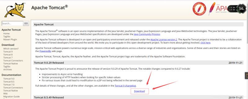 Tomcat的下載與安裝第一步:先在官網下載tomcat如以上已成功安裝了jdk,下面進行tomcat的安裝(與jdk步驟類似)首先先進入官網下載tomcat:http://tomcat.apache.org/