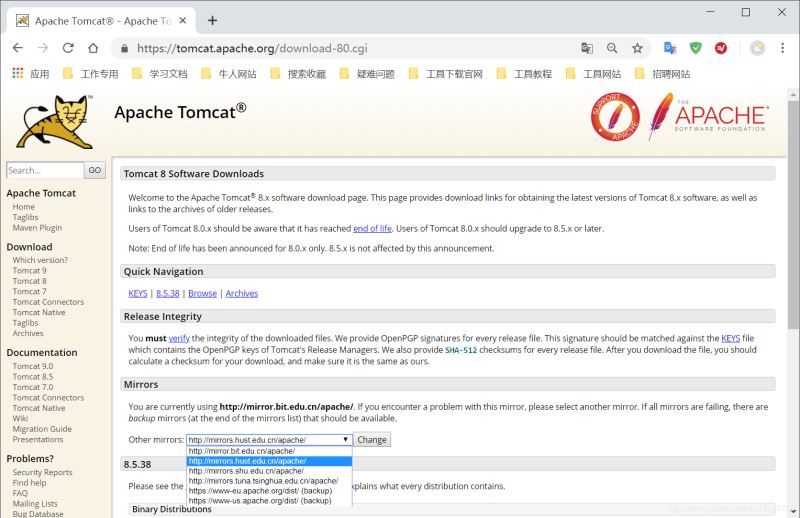 安裝 Apache Tomcat8 使用華中師范科技大學(xué)開源鏡像下載