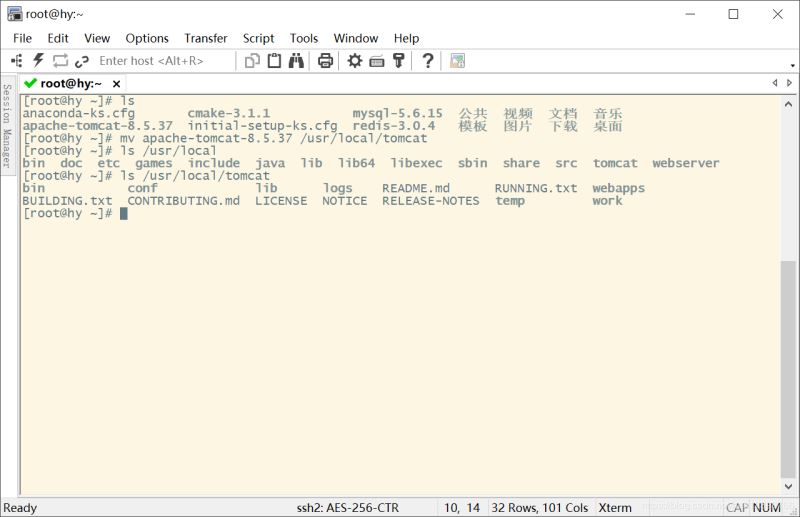 # mv apache-tomcat-8.5.37 /usr/local/tomcat