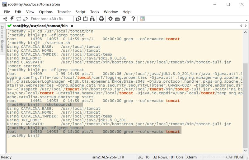 # cd /usr/local/tomcat/bin # ./shutdown.sh