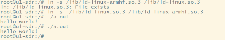 2. 建立軟鏈接 ln -s /lib/ld-linux.so.3 /lib/ld-linux-armhf.so.3