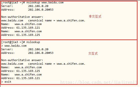 nslookup有交互式和非交互式兩種使用方式如下圖: