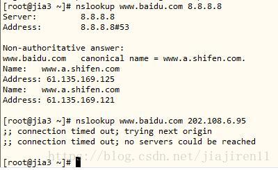 [root@jia3 ~]# dig www.baidu.com +trace ; <<>> DiG 9.8.2rc1-RedHat-9.8.2-0.30.rc1.el6 <<>> www.baidu.com +trace ;; global options: +cmd . 320307 IN NS a.root-servers.net. . 320307 IN NS k.root-servers.net. . 320307 IN NS i.root-servers.net. . 320307 IN NS l.root-servers.net. . 320307 IN NS b.root-servers.net. . 320307 IN NS e.root-servers.net. . 320307 IN NS h.root-servers.net. . 320307 IN NS d.root-servers.net. . 320307 IN NS g.root-servers.net. . 320307 IN NS j.root-servers.net. . 320307 IN NS f.root-servers.net. . 320307 IN NS m.root-servers.net. . 320307 IN NS c.root-servers.net. ;; Received 228 bytes from 202.106.0.20#53(202.106.0.20) in 98 ms com. 172800 IN NS c.gtld-servers.net. com. 172800 IN NS l.gtld-servers.net. com. 172800 IN NS d.gtld-servers.net. com. 172800 IN NS h.gtld-servers.net. com. 172800 IN NS m.gtld-servers.net. com. 172800 IN NS a.gtld-servers.net. com. 172800 IN NS k.gtld-servers.net. com. 172800 IN NS b.gtld-servers.net. com. 172800 IN NS e.gtld-servers.net. com. 172800 IN NS g.gtld-servers.net. com. 172800 IN NS j.gtld-servers.net. com. 172800 IN NS i.gtld-servers.net. com. 172800 IN NS f.gtld-servers.net. ;; Received 491 bytes from 192.5.5.241#53(192.5.5.241) in 93 ms baidu.com. 172800 IN NS dns.baidu.com. baidu.com. 172800 IN NS ns2.baidu.com. baidu.com. 172800 IN NS ns3.baidu.com. baidu.com. 172800 IN NS ns4.baidu.com. baidu.com. 172800 IN NS ns7.baidu.com. ;; Received 201 bytes from 192.48.79.30#53(192.48.79.30) in 501 ms www.baidu.com. 1200 IN CNAME www.a.shifen.com. a.shifen.com. 1200 IN NS ns1.a.shifen.com. a.shifen.com. 1200 IN NS ns2.a.shifen.com. a.shifen.com. 1200 IN NS ns5.a.shifen.com. a.shifen.com. 1200 IN NS ns3.a.shifen.com. a.shifen.com. 1200 IN NS ns4.a.shifen.com. ;; Received 228 bytes from 220.181.37.10#53(220.181.37.10) in 8 ms