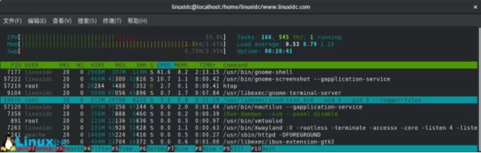 3.要啟動(dòng)htop,只需運(yùn)行命令。