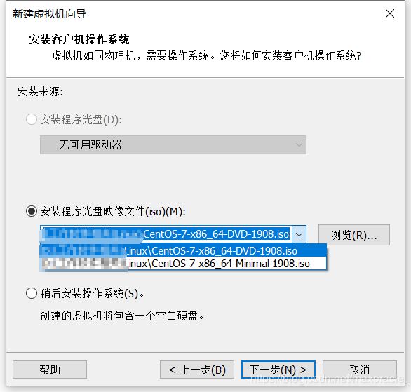 默認(rèn)一直點(diǎn)【下一步】到選擇安裝盤的位置,選擇自己已經(jīng)下載好的官方DVD鏡像文件(不要整別的鏡像,避免走不必要