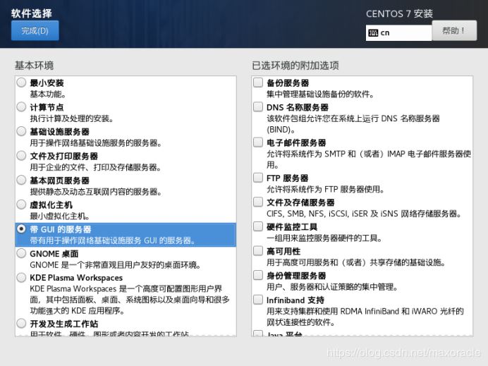點(diǎn)擊“軟件選擇”,選擇“o帶GUI的服務(wù)器”,右邊的附件選項(xiàng)暫時(shí)不要勾選。個(gè)人PC學(xué)習(xí)使用建議GUI,避免走坑把自己埋起來。喜歡自虐的可以選最小安裝,喜歡搗鼓的隨便選