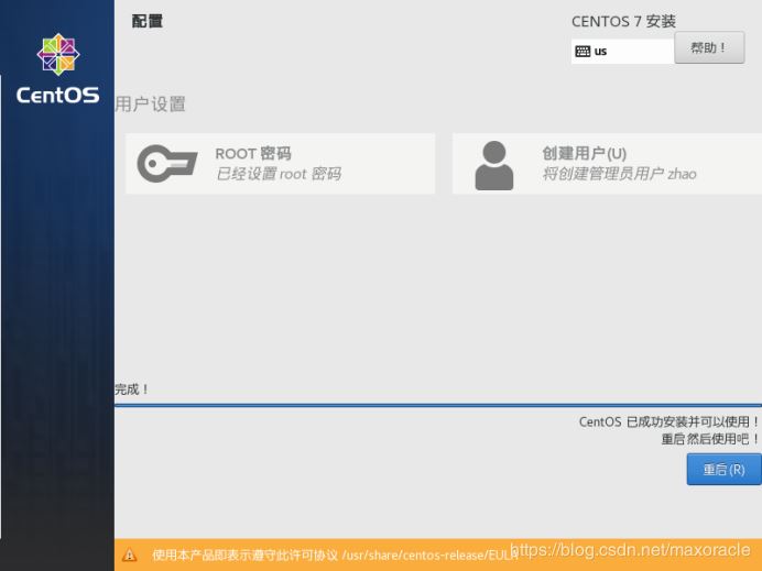 安裝完成后點(diǎn)擊【重啟】,等它自己啟動(dòng)