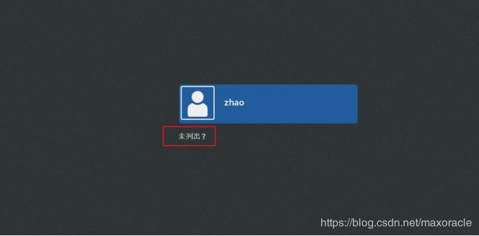 界面列出的登錄用戶是我們前面創(chuàng)建的用戶,我們用root用戶登錄,點(diǎn)擊“未列出”