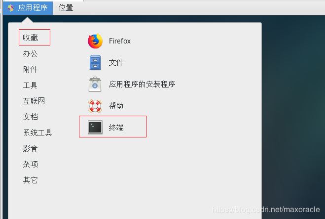 點(diǎn)擊左上角的“應(yīng)用程序”,選擇“終端”