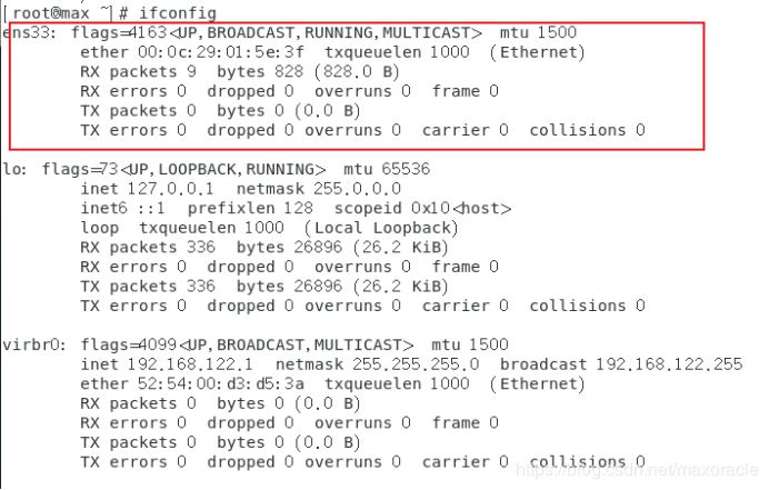 ens33是默認(rèn)的網(wǎng)絡(luò)連接名,并沒有ip地址,這時(shí)候不管是ping 宿主機(jī)的ip還是ping 百度的網(wǎng)址都是ping不通的