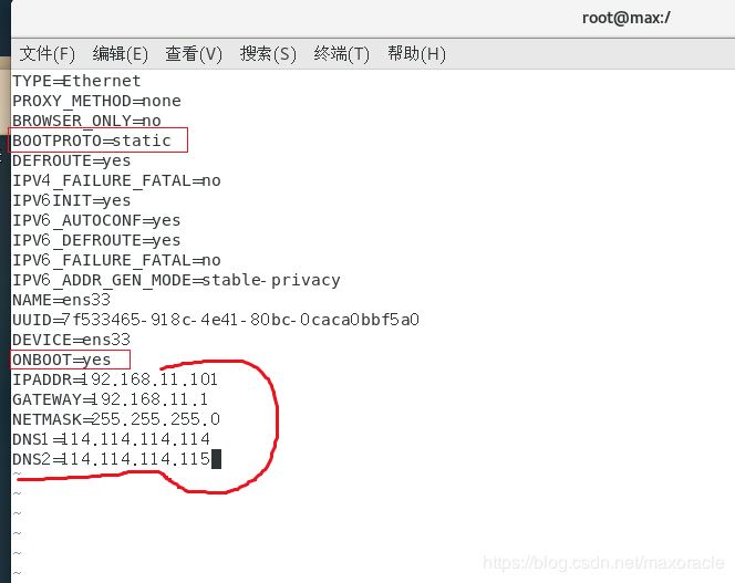 輸入: vim /etc/sysconfig/network-scripts/ifcfg-eno33 修改配置文件