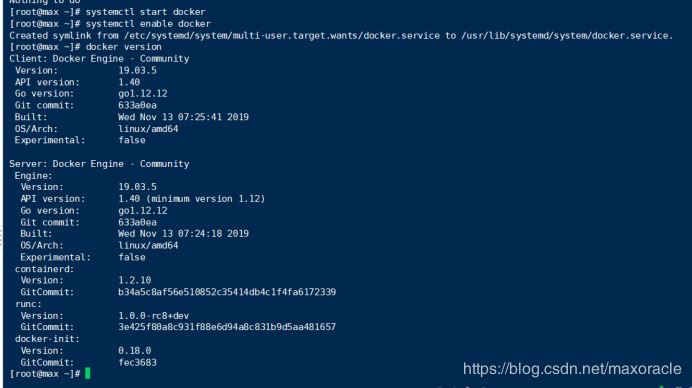 驗(yàn)證安裝是否成功(有client和service兩部分表示docker安裝啟動(dòng)都成功了)