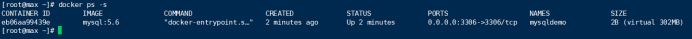 docker run -p 3306:3306 --restart=always --name mysql-demo -v /usr/local/gourd/docker/mysql/conf:/etc/mysql/conf.d -v /usr/local/gourd/docker/mysql/logs:/logs -e MYSQL_ROOT_PASSWORD=123456 -d mysql:5.6