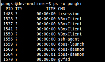 在需要查看特定用戶進程的情況下,我們可以使用 -u 參數(shù)。比如我們要查看用戶'pungki'的進程,可以通過下面的命令: