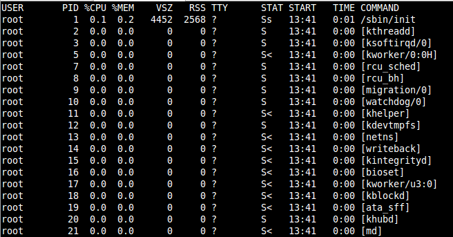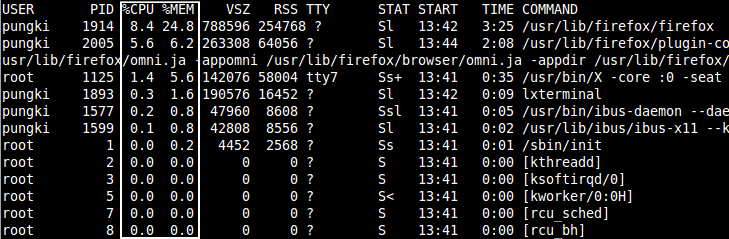 也許你希望把結(jié)果按照 CPU 或者內(nèi)存用量來篩選,這樣你就找到哪個進程占用了你的資源。要做到這一點,我們可以使用 aux 參數(shù),來顯示全面的信息: