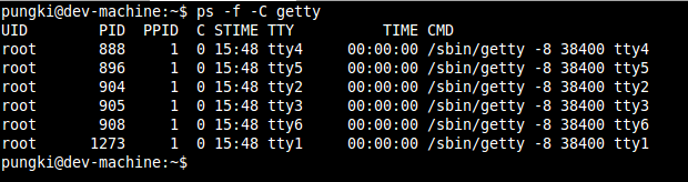 使用 -C 參數(shù),后面跟你要找的進程的名字。比如想顯示一個名為getty的進程的信息,就可以使用下面的命令: