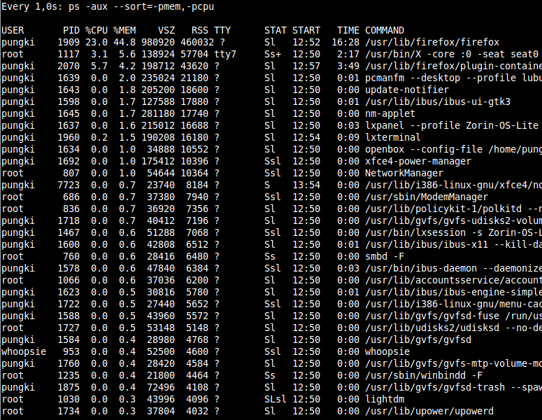 當(dāng)有一種情況,我們需要像上面第四點中提到的通過CPU和內(nèi)存的使用率來篩選進程,并且我們希望結(jié)果能夠每秒刷新一次。為此,我們可以將ps命令和watch命令結(jié)合起來。