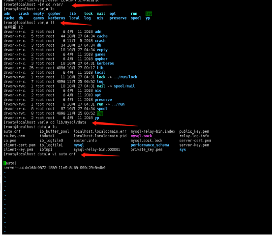2.由于是克隆,所以會(huì)導(dǎo)致服務(wù)的uuid是相同的,執(zhí)行這幾行命令,將auto.cnf中的uuid清空;
