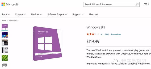看一下小編在Windows的官網(wǎng)上找到的Windows 8.1版的售價:120美元,按照目前美元兌人民幣的匯率:1 : 6.2,就是745元。好貴,更不用說Windows里的程序價格也很貴,一個Office也要好幾百美元: