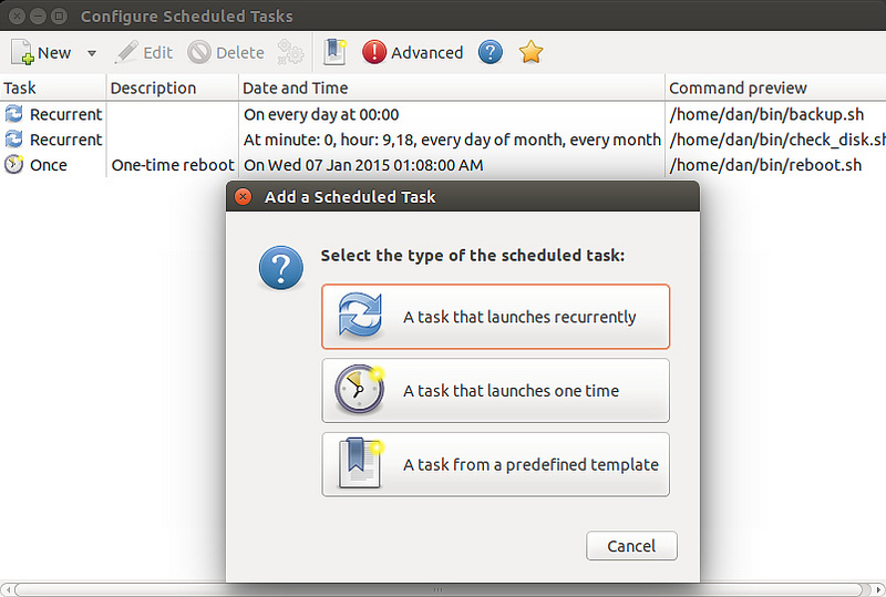 如果你在Linux桌面環(huán)境中,你可以使用crontab的更加友好的GUI前端來(lái)添加或者添加一個(gè)cron任務(wù)。
