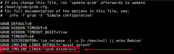 GRUB_CMDLINE_LINUX=“xxxxx ipv6.disable=1”