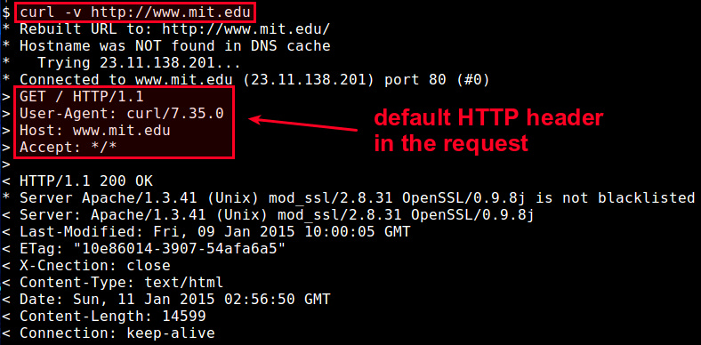 curl是一個(gè)強(qiáng)大的命令行工具,它可以通過(guò)網(wǎng)絡(luò)將信息傳遞給服務(wù)器或者從服務(wù)器獲取數(shù)據(jù)。他支持很多的傳輸協(xié)議,尤其是HTTP/HTTPS以及其他諸如FTP/FTPS, RTSP, POP3/POP3S, SCP, IMAP/IMAPS協(xié)議等。當(dāng)你使用curl向一個(gè)URL發(fā)送HTTP請(qǐng)求的時(shí)候,它會(huì)使用一個(gè)默認(rèn)只包含必要的頭部字段(如:User-Agent, Host, and Accept)的HTTP頭。
