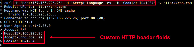 例如:以下命令設(shè)置了3個(gè)HTTP頭部字段。也就是說(shuō),重寫了“HOST”字段,并且添加了兩個(gè)字段("Accept-Language" 和 "Cookie")