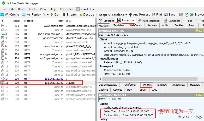 - 可在Windows客戶端中使用fiddler查看網(wǎng)頁緩存時間