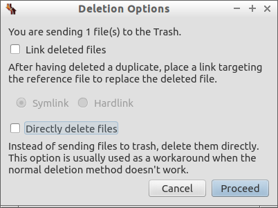 如果因?yàn)槿魏蔚陌踩珕?wèn)題而不能移除某些重復(fù)文件,請(qǐng)記下這些文件的位置,通過(guò)終端或文件管理器來(lái)手動(dòng)刪除它們。
