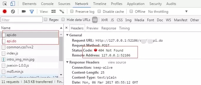 本地啟動了一個前后端分離的WEB應(yīng)用,端口為:3000,可以通過http://127.0.0.1:3000訪問前端頁面,頁面中有些Ajax請求的地址為http://127.0.0.1:3000/api/getList,一般情況下肯定是404或者請求失敗,如下圖: