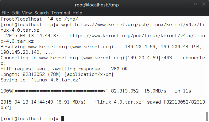 # wget https://www.kernel.org/pub/linux/kernel/v4.x/linux-4.0.tar.xz
