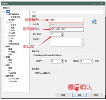 輸入登陸服務(wù)器Ip,端口22(默認(rèn)),選擇協(xié)議SSH。之后確認(rèn)和連接,
