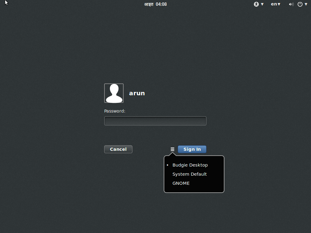 安裝完成之后,我們能在登錄時(shí)選擇進(jìn)入budgie桌面。
