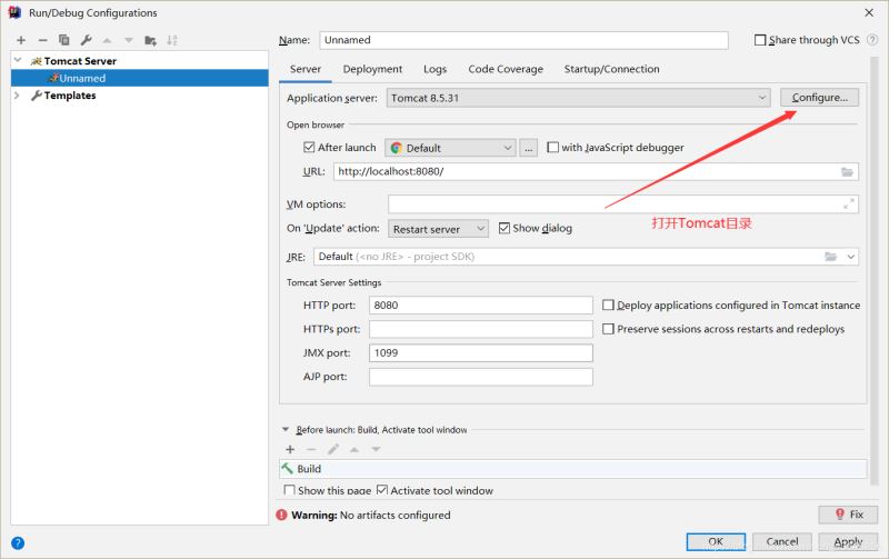 7.繼續(xù)回到配置運行,選中之前創(chuàng)建的Tomcat,點擊下方的"+"