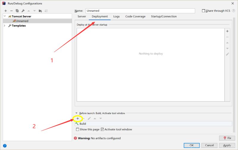 (4).選擇Deployment啥也沒有,發(fā)現(xiàn)下方有紅色驚嘆號(覺得事情沒這么簡單),選擇添加