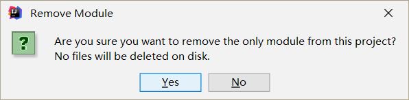 彈出警告,大致意思是說:移除項目唯一的模塊,不會在硬盤上刪除
