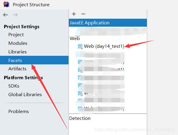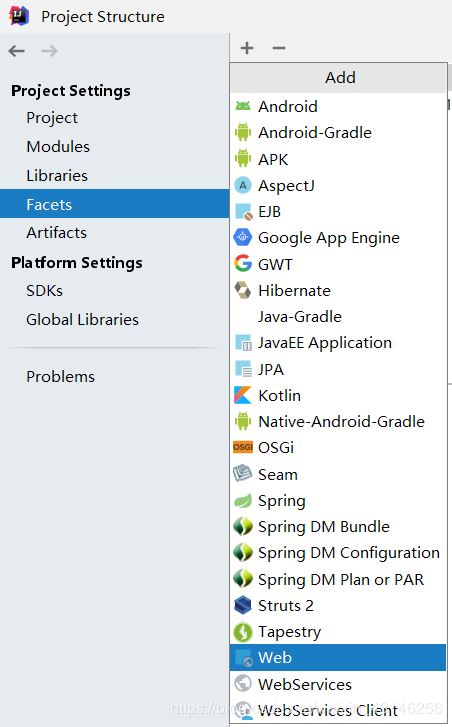 5.繼續(xù)打開Project Structure...,選擇Facets,會看見項目名
