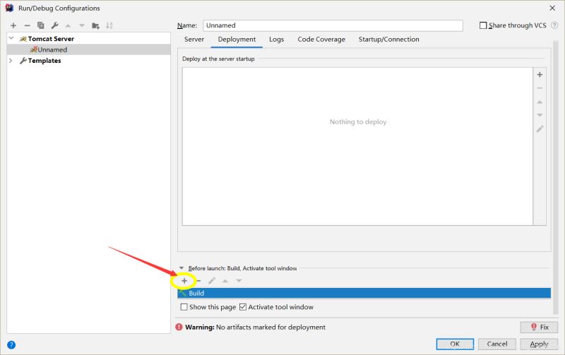 (之后才發(fā)現(xiàn)不用在這里加,直接選擇Deployment后添加Artifects就會自動在這里加上)